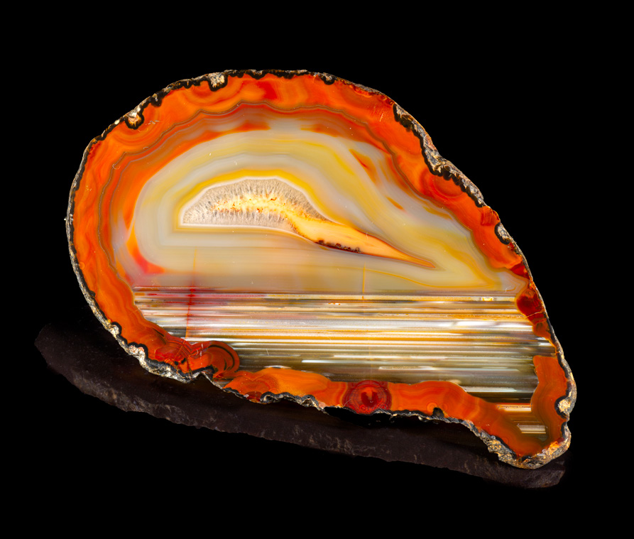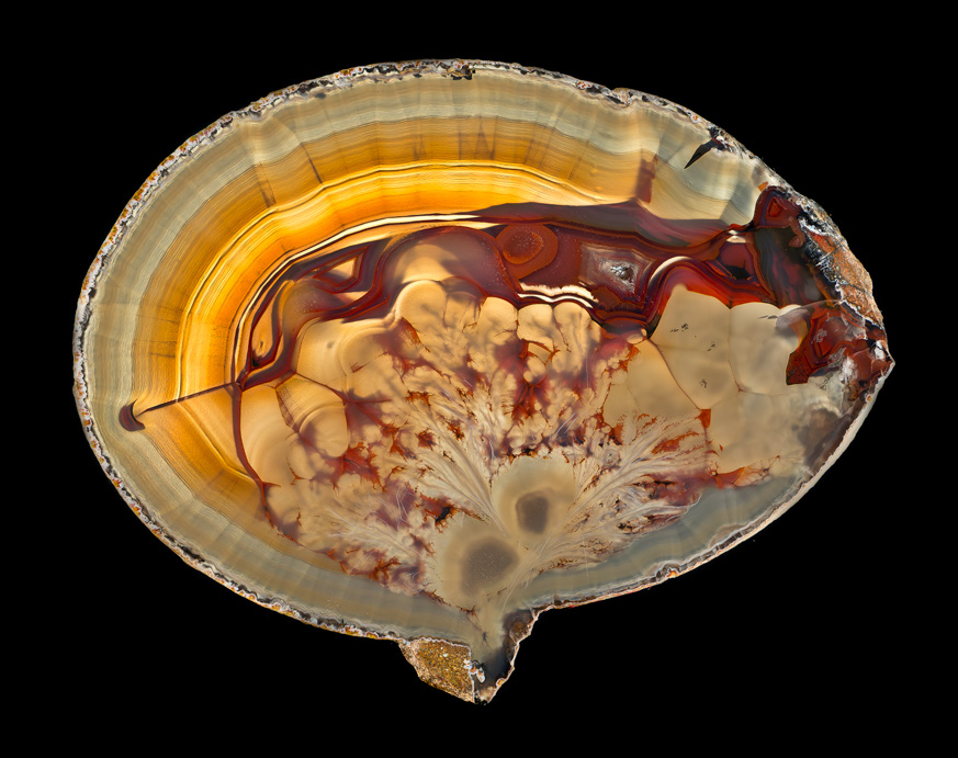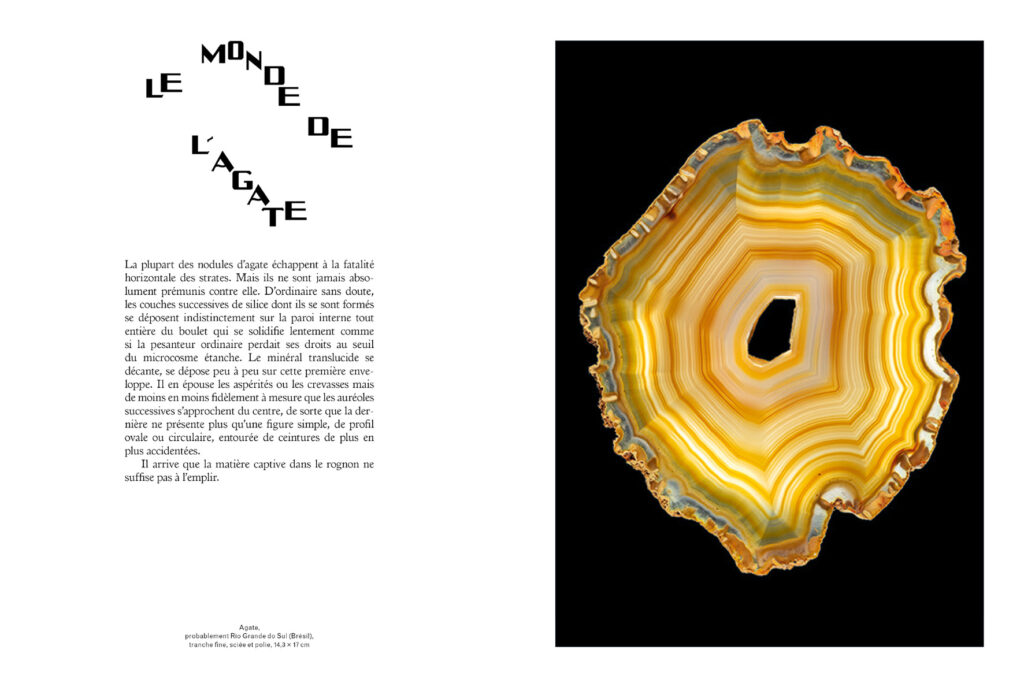 A discerning eye, Roger Caillois was close to the Surrealists in the early thirties and friends with André Breton. He viewed nature as a painter (a concept covered by the Latin phrase Natura pictrix), recognizing its ability to generate abstractions well before conceptual art and the first readymades. Roger Caillois therefore cultivated a preference for the “unintentional works of somnambulistic nature”: the enigmatic patterns of septaria appearing to him as “messageless hieroglyphs” while onyx, through its blackness, conjured imaginary nights. Dendrites permeated with vegetation and agates with multicolored bands conveyed a wealth of images.