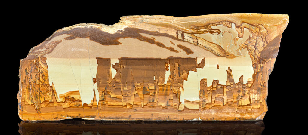The exhibition explores the writer’s sources of inspiration, starting with Patagonia, which he discovered during his exile in Argentina in 1939-1945, and which aroused his interest in picture stones – a kind of rock whose shape or natural motifs evoke images or landscapes. Visitors will follow Roger Caillois on his travels to Japan and China and discover his fascination for Asian cultures as well as his reinterpretation of the “mystical hikes” of Chinese scholars such as the Song-dynasty Chinese poet Mi Fu (1051 – 1107), who encouraged mental reverie through contemplation of the petrified world. This predilection for drawing parallels between mineral forms and the human experience is reminiscent of Leonardo da Vinci, whose influence is illustrated by pietra paesina (or ruin marbles), landscape marbles that resemble engravings and raise the question of a rivalry between artist and nature.