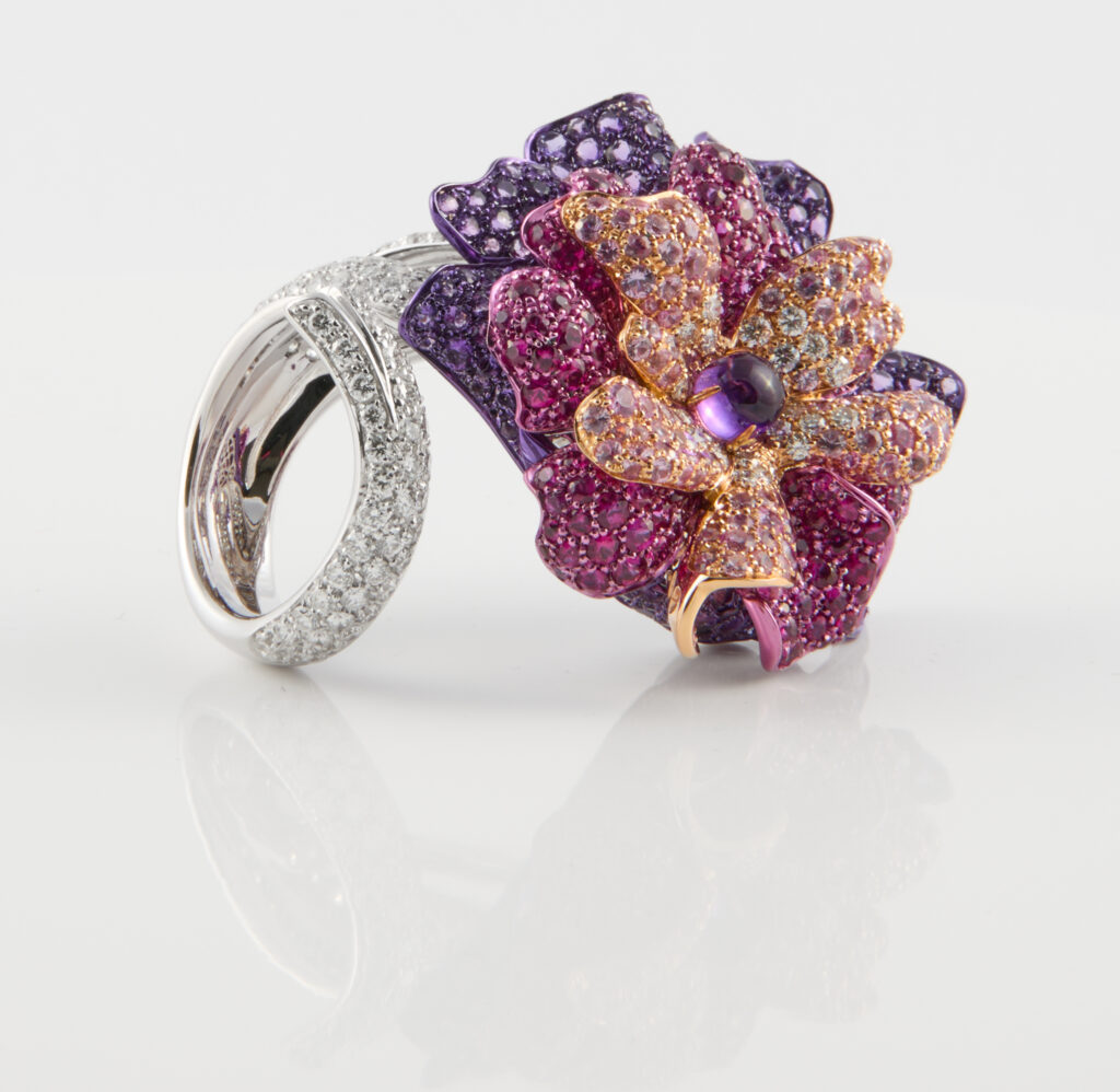 (Light pink sapphire, dark pink sapphire, amethyst, including center piece)