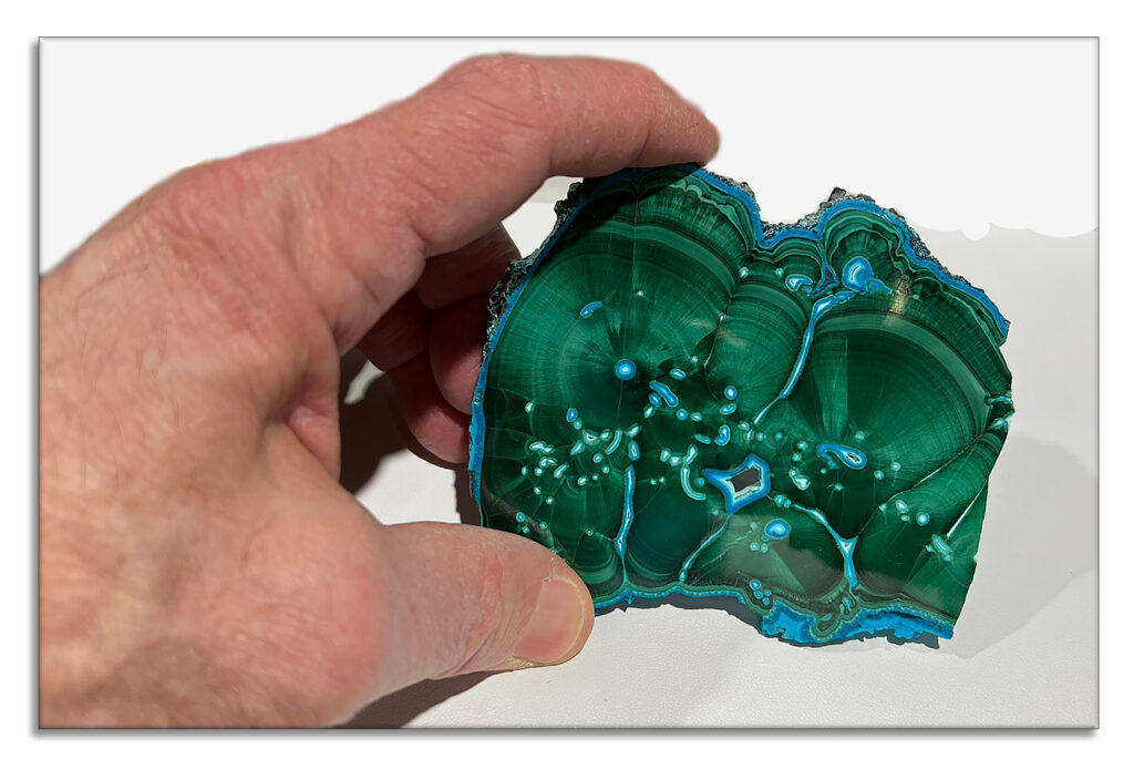Typically, you can polish “eye clean” gems into traditional cuts and shapes. Or, you can carve or cab (cut “en cabochon”) gem materials to obscure the unsightly inclusions. You can slice and bright polish thin wafers of what in the past would have been considered “non-gem quality” material, to feature natural growth markings. Or you can take any of these quality materials and try something new, where color, shape, and texture are highlighted – give them a matte finish!